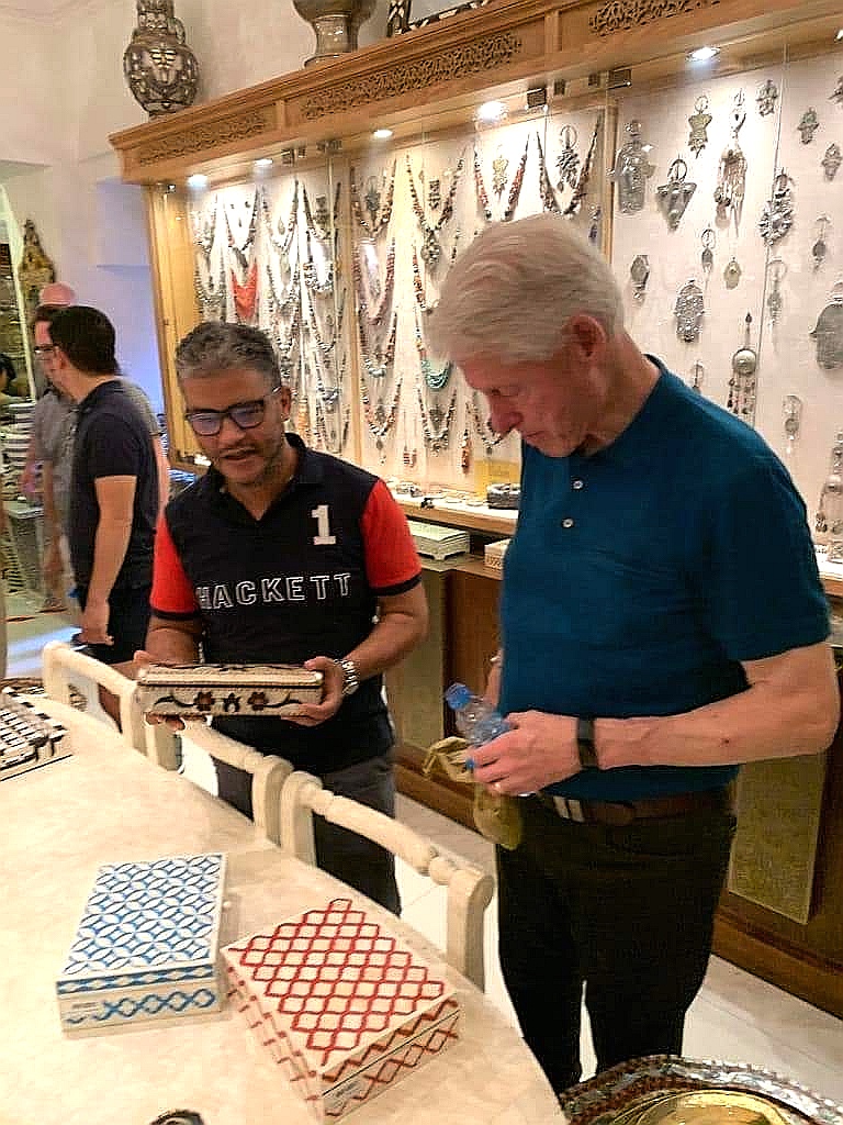Les vendredis se suivent et ne se ressemblent pas pour l’ancien président des États Unis d’Amérique, Bill Clinton. En visite au Maroc pour assister au mariage de son ami, le milliardaire marocain Marc Lasry, l’ancien homme fort de la Maison Blanche a passé une partie de la journée à se balader dans les ruelles de l’ancienne médina de Marrakech passant d’une échoppe à une autre et se prêtant aux désirs des Marrakchis qui ont voulu éterniser cet instant en prenant quelques photos. Bill Clinton a apprécié toute la beauté d’une telle place avec ses couleurs et son ambiance unique. Une virée sous le signe de la décontraction et du bien-être pour un grand ami du Maroc.