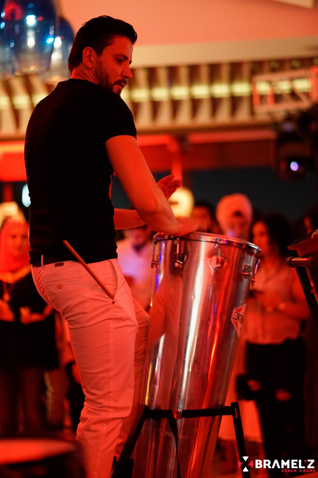 Il ne suffit pas d’avoir des muscles et de passer des heures à essayer de maîtriser la fonte pour aller au bout de son corps et de ses limites. Non, il ne suffit pas de vouloir et de foncer pour réaliser des rêves et écrire de belles pages sur un parcours qui te fixe constamment de nouveaux défis. Il faut de la niaque, du courage, de la résistance, de la détermination et beaucoup de sacrifices. Hadi Laabi, qui vit aujourd’hui à Dubaï, lui le natif de Salé en 1984, a d’abord été lauréat d’HEM Casablanca en Marketing. Le chemin entre la finance, le management, le marketing et les arts semble improbable, voire inimaginable. Pourtant. Hadi Laabi décide de faire un virage à 180 degrés. C’est la musique son monde. C’est le rythme son kiffe. Ce qui le fait vibrer c’est la percussion. Il fonde alors un groupe musical qu’il va nommer «BRAMEL’Z », à traduire par Barils. Oui tout est parti de là, un Bermil, quelques répétitions, on se chauffe les mains, on entre en transe et on lance la zic. Très vite, son band prend forme, et Hadi Laabi, peaufine son art, bosse comme un malade et finit par donner des spectacles un peu partout dans le monde, avec toujours le même grand succès. En dix années, Hadi Laabi a fait le tour de la question. Faire de la musique, c’est magique : « Le sentiment que j’ai quand je joue est indescriptible. Cela va au-delà des mots, je suis littéralement transporté ailleurs et c’est cette sensation qui fait le bonheur d’un homme qui aime ce qu’il fait. Jouer, faire de la percu, c’est faire un voyage intérieur. » Et comme le bougre est également bassiste ayant bossé avec plusieurs groupes Rock, il a la bonne mélodie, il a le sens de la note, il sait balancer de la bonne musique et la faire partager.