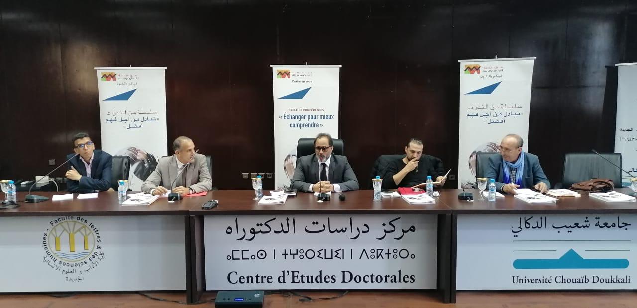 Modéré par Abdelhak Najib, journaliste et écrivain, le panel de discussion a réuni quatre professeurs universitaires de philosophie : Mohamed Naiym de l’Université Chouaib Doukkali d’El Jadida ; Adil Hadjami de l’Université Mohammed V de Rabat ; Essaid Labib et Ahmed Kaza de l’Université Chouaib Doukkali d’El Jadida.