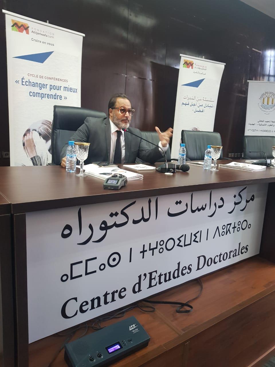 Dans un mot de bienvenue prononcé au nom de Mohamed El Kettani, Président Directeur Général du groupe Attijariwafa bank, Ismail Douiri, Directeur Général du groupe Attijariwafa bank a rappelé : « Nous avons tenu à organiser, dans ce cadre universitaire de choix, une rencontre philosophique qui s’inscrit dans le cycle dédié aux grands penseurs arabes. À travers cette démarche, nous confirmons l’intérêt que nous accordons à nos enseignants-chercheurs, et notre volonté de rendre hommage à leur rigueur scientifique et à leur engagement citoyen. Le Maroc a besoin de ses professeurs en Sciences humaines, et de Philosophie en particulier, pour persévérer dans la voie de la modernité, sans jamais renier la richesse de notre civilisation et l’héritage de nos penseurs. »