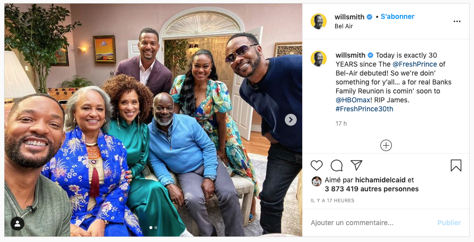 «Aujourd’hui, cela fait exactement 30 ans que le «Prince de Bel-Air» a débuté. Nous faisons donc quelque chose pour vous tous… Une vraie réunion de la famille Banks arrive bientôt sur HBOmax ! Repose en paix James», a écrit l’acteur américain sous la publication.