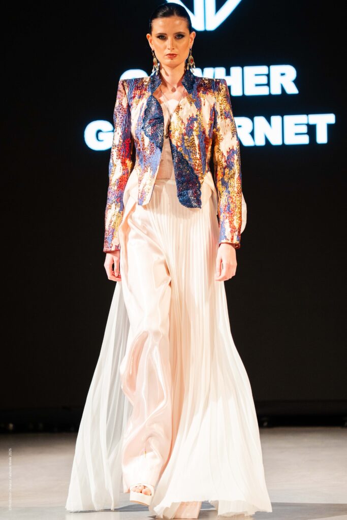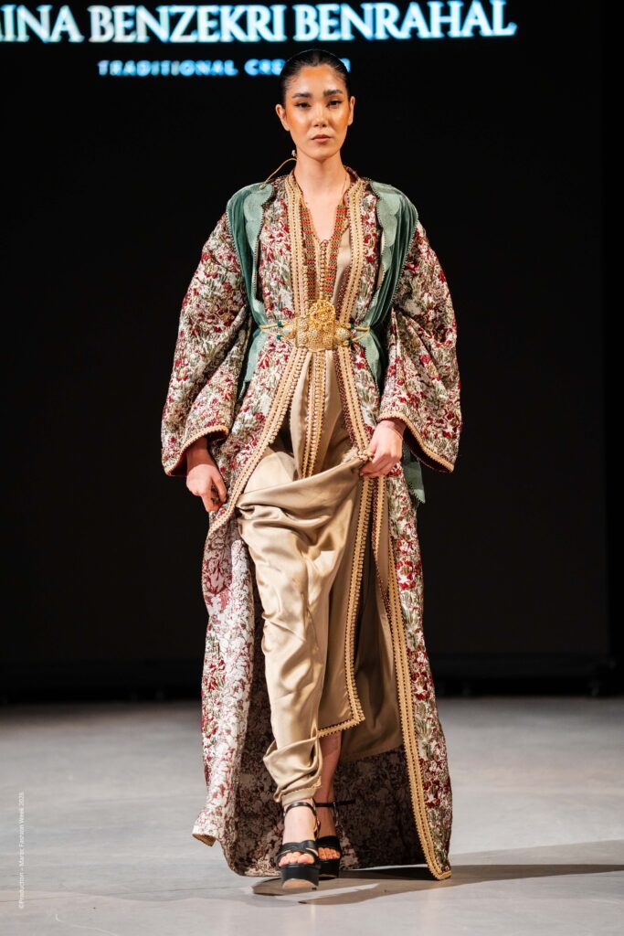 C’est lors de la soirée de clôture que l’événement a atteint son sommet. Invitée d’honneur, Sara Chraïbi a signé au Musée de l’Art Culinaire Marocain un défilé d’une rare intensité. Intitulée Un Jardin, Deux Âmes, sa collection haute couture, inspirée des mots de Jalâl al-Dîn Rûmî, a déployé un univers sensible et poétique, où lumière, couleur et émotion dialoguaient avec grâce. Dans un subtil va-et-vient entre tradition et écriture contemporaine, chaque silhouette racontait une histoire, portée par une remarquable maîtrise des matières, des coupes et des volumes. Une clôture magistrale, à l’image de cette Fashion Week : élégante, ambitieuse et résolument tournée vers l’avenir.