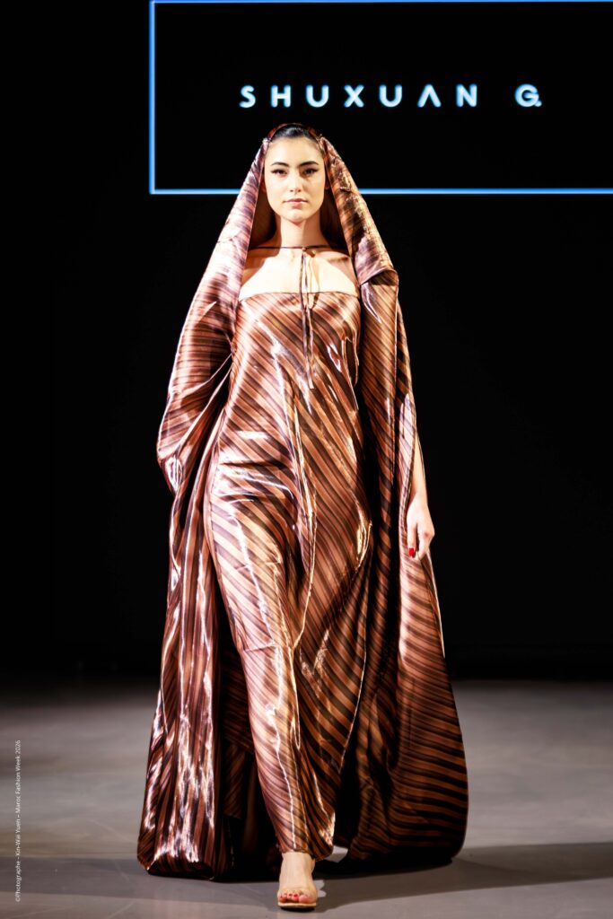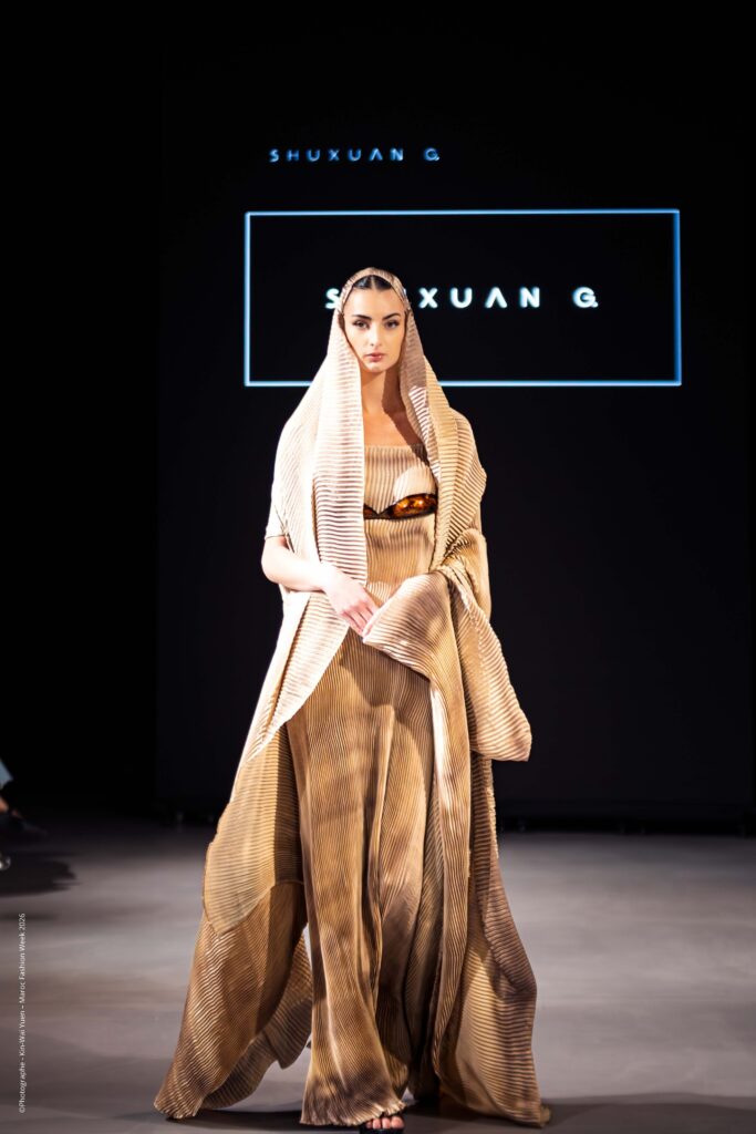 Pendant deux jours, l’événement a réuni des créateurs marocains et internationaux autour d’une vision ambitieuse, articulée entre valorisation du savoir-faire, mode responsable et rayonnement économique. Sur le podium se sont succédé les univers de Shuxuan G (Chine), Göwher Gouvernet (Turkménistan), Claude Patrick (France) et Molida (Maroc) pour la haute couture, ainsi que Weekend Max Mara (Italie), Gérard Darel (France), Atelier 44, The 6th et Bella Pelle, venus enrichir cette traversée des styles entre influences marocaines et signatures internationales. Marrakech s’est ainsi imposée, le temps d’un week-end, comme un véritable carrefour des influences.