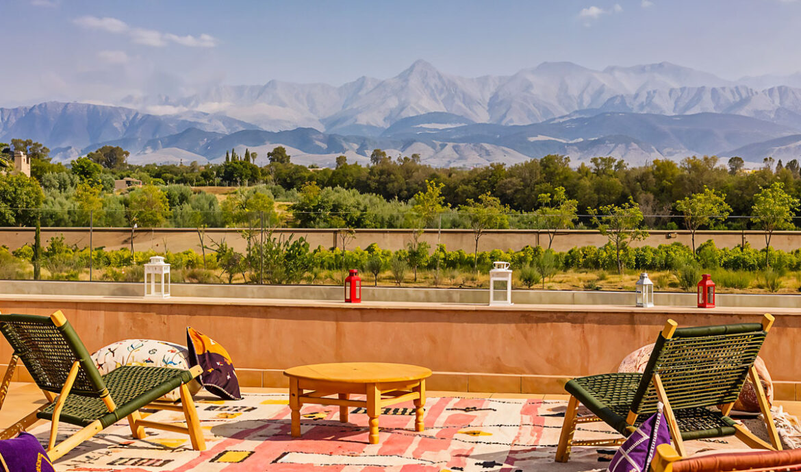 Cette propriété de 650 m², entourée de palmiers et d’oliviers, offre une vue imprenable sur les majestueuses montagnes de l’Atlas. Ici, les voyageurs peuvent savourer le calme et la beauté de la nature tout en profitant d’un hébergement au charme authentique, où chaque détail a été pensé avec soin pour garantir un séjour inoubliable.