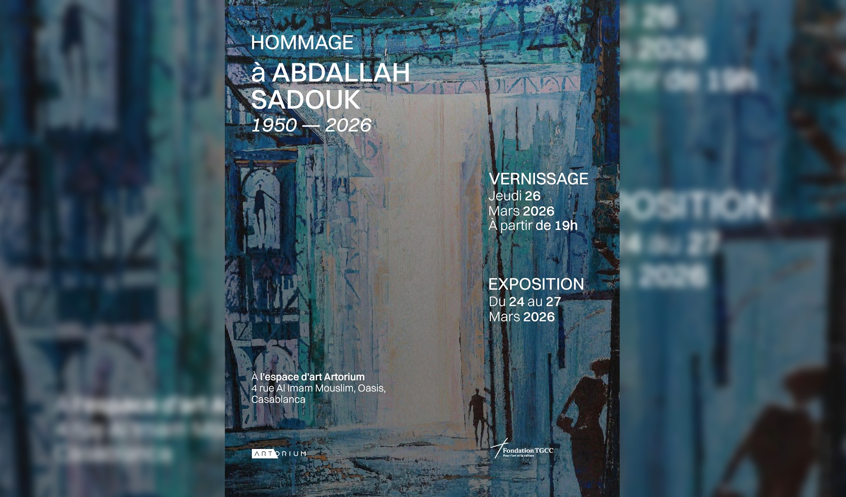 À Casablanca, l’espace d’art Artorium accueille du 24 au 27 mars 2026 une exposition dédiée à Abdellah Sadouk, avec un vernissage organisé ce jeudi 26 mars à partir de 19h. Porté par la Fondation TGCC, cet événement s’inscrit dans une programmation qui met en lumière des figures marquantes de la scène artistique marocaine, dans un cadre pensé pour la transmission et la rencontre.