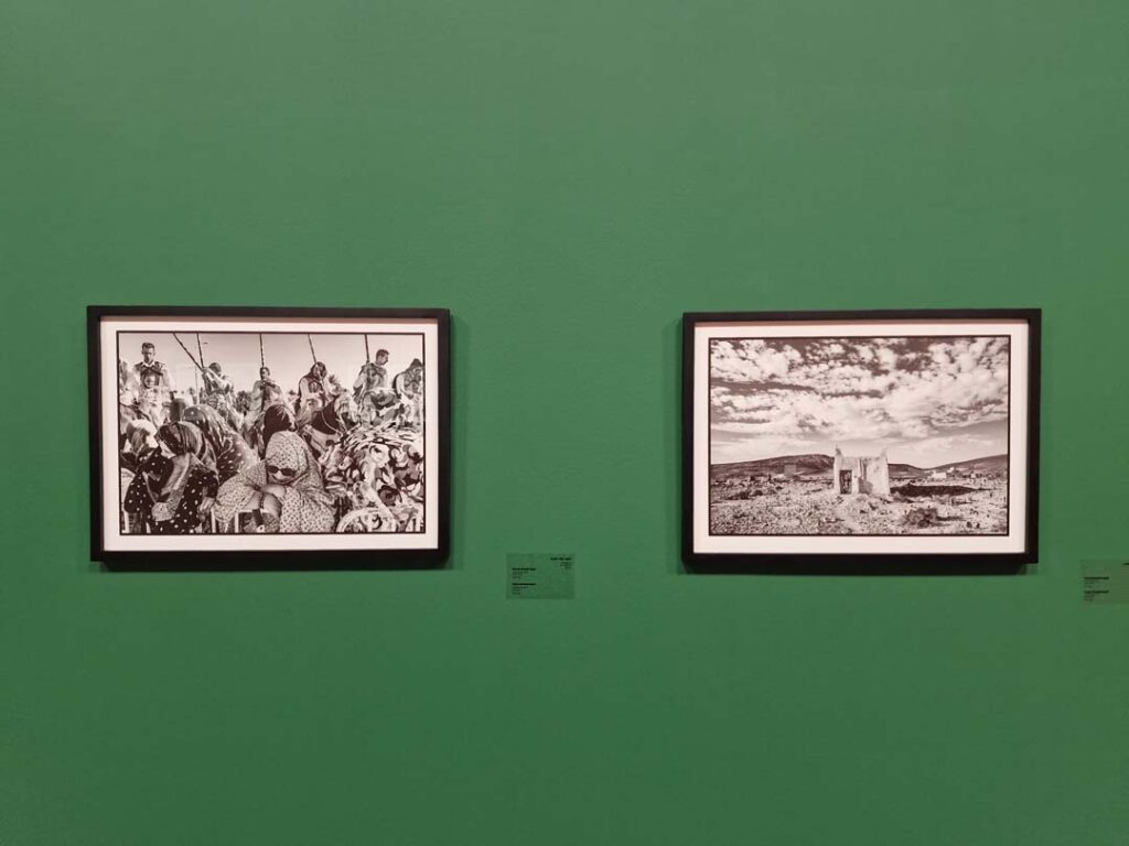 La seconde salle déploie le Sahara de Daoud Aoulad-Syad : dunes, lumière, souffle du vent, portraits fiers et visages juvéniles. Son regard capte la vie quotidienne des provinces du Sud et le lien charnel qui les unit à la Nation. On en sort avec l’impression d’avoir écouté un récit autant que regardé des images.