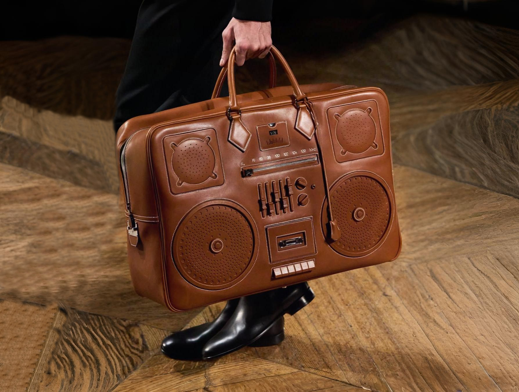 Cette pièce a marqué les esprits lors du dernier défilé masculin orchestré par Véronique Nichanian. Elle résume à elle seule l’esprit de la collection : une élégance contemporaine, nourrie de références culturelles fortes, sans jamais céder à la caricature. Avec ce sac-boombox, Hermès rappelle que le luxe, lorsqu’il est maîtrisé, peut se permettre de jouer avec les codes et de faire sourire, sans jamais perdre en crédibilité.