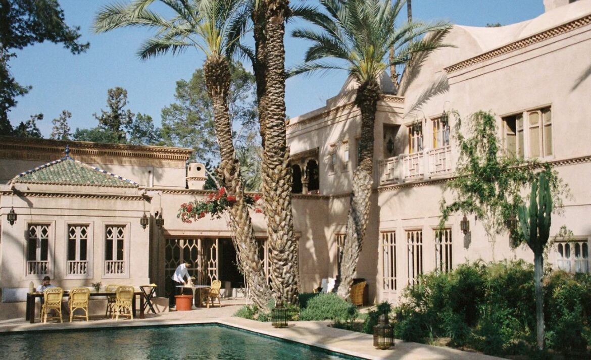 Ce qui frappe dès l’entrée à Jnane Rumi, c’est une ambiance enveloppante, presque onirique. Une odeur d’oud clair, subtil et entêtant, flotte dans l’air, comme une signature olfactive gravée dans les souvenirs. Les repas, eux, se dégustent au bord de la piscine, sous l’ombre légère des bougainvillées et des palmiers inclinés. Le jardin, entre herbe tendre, chaises en rotin et parasols à pompons, semble tout droit sorti d’un rêve oriental revisité par Lewis Carroll.