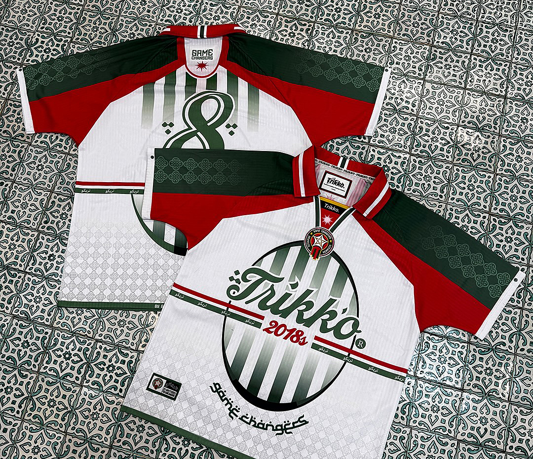 Le storytelling visuel sur Instagram est soigné jusqu’au bout : photographié devant un mur d’inspiration mauresque, ballon rouge à la main, le modèle incarne une jeunesse consciente, en quête de représentations vraies. Trikko ne vend pas une nostalgie formatée, mais une pièce à porter comme un manifeste. Et à ce prix-là, le message est clair : le style peut être un acte culturel.