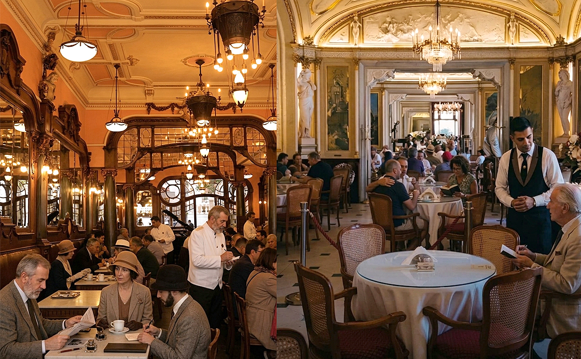 Le phénomène dépasse rapidement les frontières européennes. À Rio de Janeiro, la Confeitaria Colombo, inaugurée en 1894, mêle influences européennes et identité locale dans un espace spectaculaire, devenu un repère culturel incontournable. À Buenos Aires, le Café Tortoni, fondé en 1858, capte quant à lui l’âme artistique de la ville, entre littérature, musique et conversations à voix basse.
