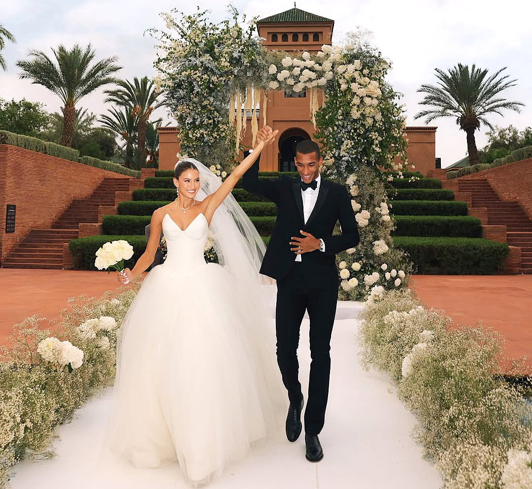 Le mariage, intime mais somptueux, a réuni 120 invités venus des quatre coins du monde. Entre les arches fleuries, les habits traditionnels marocains et l’élégance des tenues de soirée, tout semblait orchestré pour magnifier la fusion des cultures. Nina, vêtue d’un caftan vert somptueux lors de la cérémonie traditionnelle, a fait une entrée spectaculaire dans la mythique amariya, portée par des hommes en habits d’apparat. Ce moment, hautement symbolique, a marqué les esprits et honoré les coutumes marocaines.