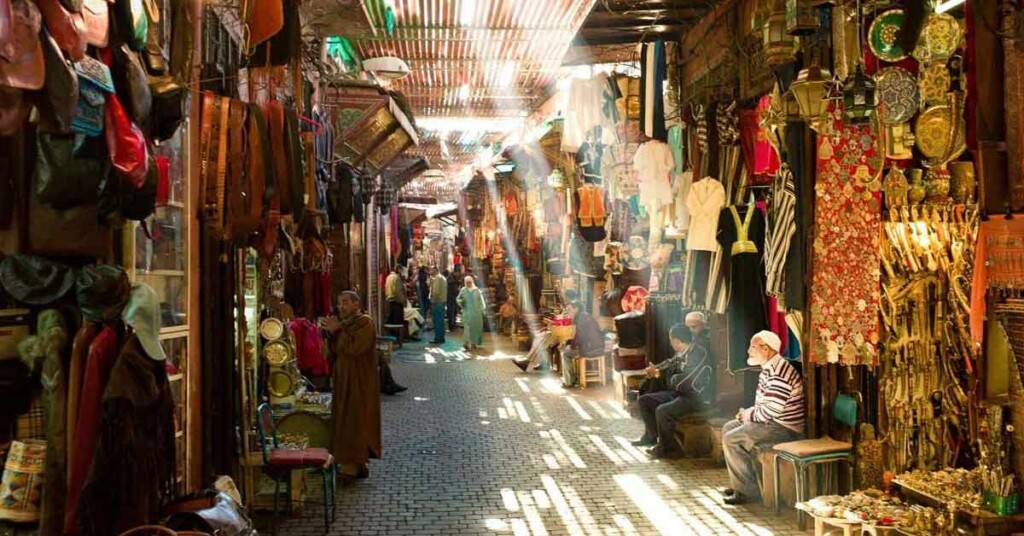 La journée commence dans un café animé du centre, face aux palmiers et aux bougainvilliers, autour d’un petit-déjeuner marocain et d’un premier thé brûlant. On rejoint ensuite un parc ombragé pour sentir la ville respirer avant la chaleur du jour. En quelques pas, tout change : une ruelle, un atelier, un éclat de cuivre martelé, une feuille de menthe qui parfume l’air. Car Marrakech aime surprendre. Dans la médina, les souks révèlent leurs tissus chatoyants, leurs épices, leurs paniers tressés et leurs poteries colorées. La ville aiguise la curiosité : ici, chaque pas mène vers un artisan, une anecdote, une vision du Maroc profond.