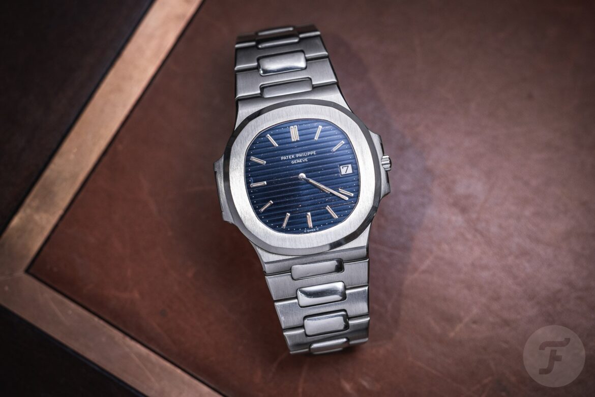 Lancée en 1976, la ref. 3700 est l’originale qui a posé les bases du design de la Nautilus. Son boîtier de 40 mm au profil mince de 7,5 mm se distingue par une lunette octogonale subtilement arrondie. Cette construction unique en deux parties, avec des « oreilles » sur les côtés fixées par des vis, garantissait une étanchéité de 120 mètres, une prouesse technique pour l’époque. Le mouvement ultra-fin calibre 28-255C, développé à partir d’un ébauche Jaeger-LeCoultre, était essentiel à la vision de Genta d’une montre élégante et profilée. Produite en seulement 3 300 exemplaires sur 14 ans, cette référence reste aujourd’hui une pièce recherchée, avec des prix avoisinant les 100 000 € sur le marché de l’occasion.