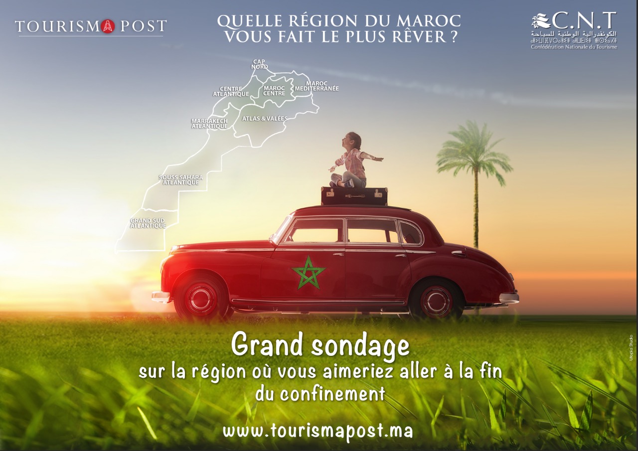 Les internautes ont jusqu’au 20 mai courant, date de la fin du confinement, pour élire parmi douze régions du Royaume leurs préférées. En organisant ce sondage, Tourisma Post en collaboration avec la CNT, entend créer une émulation autour des régions touristiques du pays. «Le tourisme interne constitue aujourd’hui, plus que jamais, une donne importante pour le secteur du tourisme. Ce sondage et toute la communication autour vont nous permettre, non seulement, de braquer les projecteurs sur les régions touristiques du Royaume mais également de connaître les tendances qui se dégagent pour la fin du confinement et les préférences des Marocains», a souligné notre consœur Ahlam Jebbar, Directrice du portail Tourisma Post.
