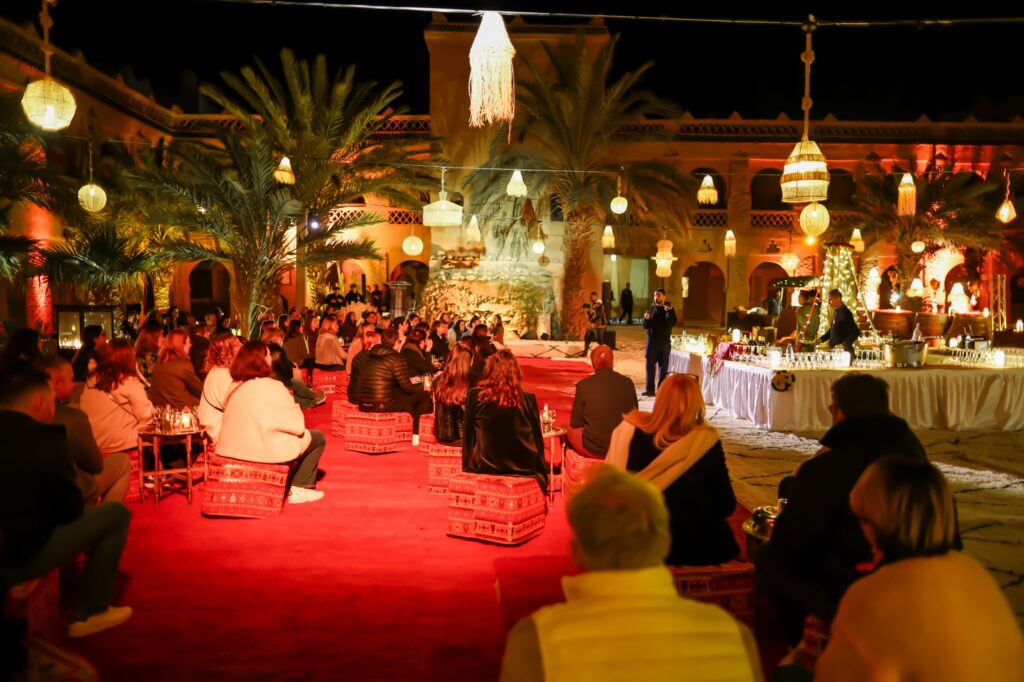 L’expérience s’est poursuivie dans le désert de Merzouga, avec l’organisation d’un workshop immersif au cœur des dunes. Pensé comme un moment d’échange et de travail dans un cadre totalement atypique, ce temps fort a permis aux participants de conjuguer réflexion professionnelle et déconnexion totale. Il s’est prolongé par un concert en plein air, offrant une expérience sensorielle unique dans un environnement naturel exceptionnel, renforçant l’impact mémoriel de l’événement.