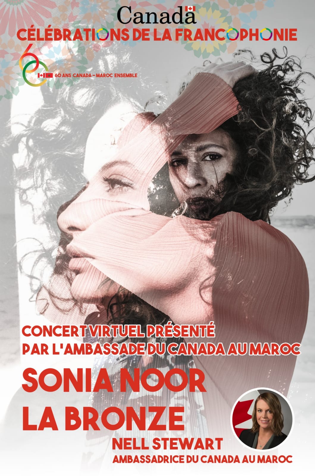 Pour commémorer les 60 ans de relations diplomatiques entre le Maroc et le Canada, tout en célébrant en filigrane la francophonie, l’ambassade canadienne au Maroc organise demain dimanche à 19h un concert musical virtuel animé par Sonia Noor et La Bronze.