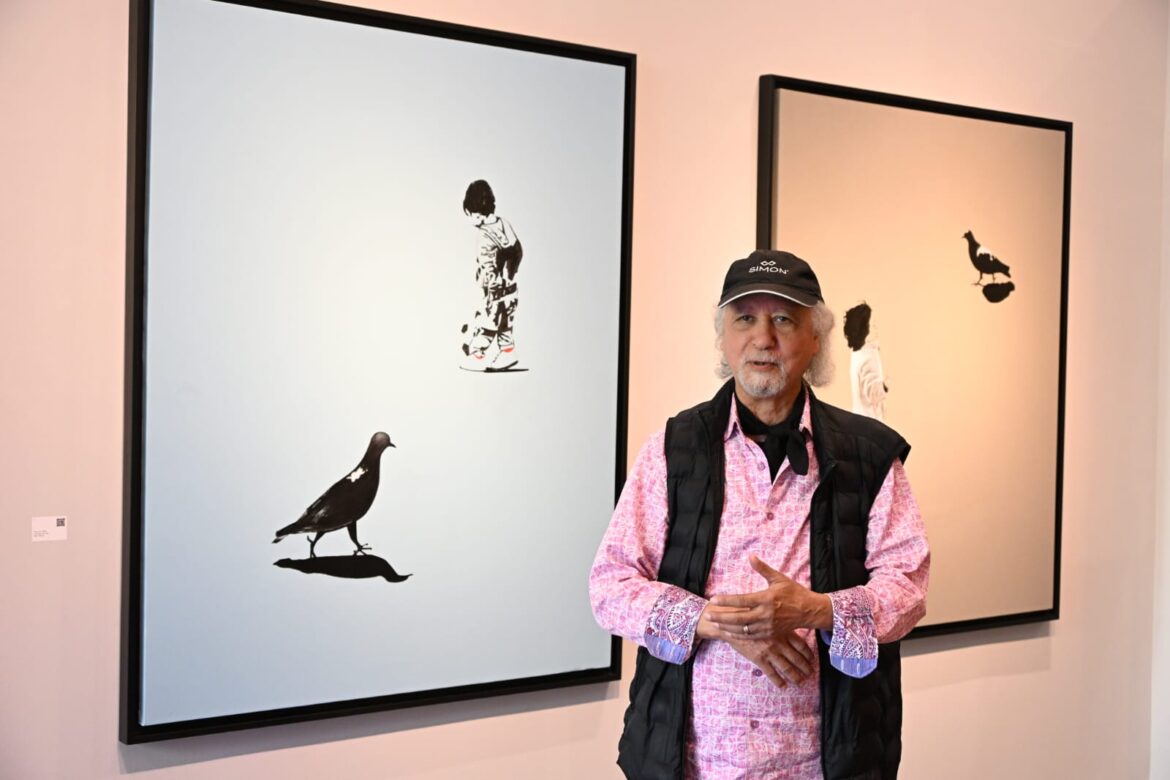 Dans ses toiles, cette réflexion se matérialise par une dualité : d’un côté, des figures reconnaissables comme l’enfant ou le pigeon, qui occupent l’espace pictural ; de l’autre, une dimension invisible, où l’imagination du spectateur est sollicitée.