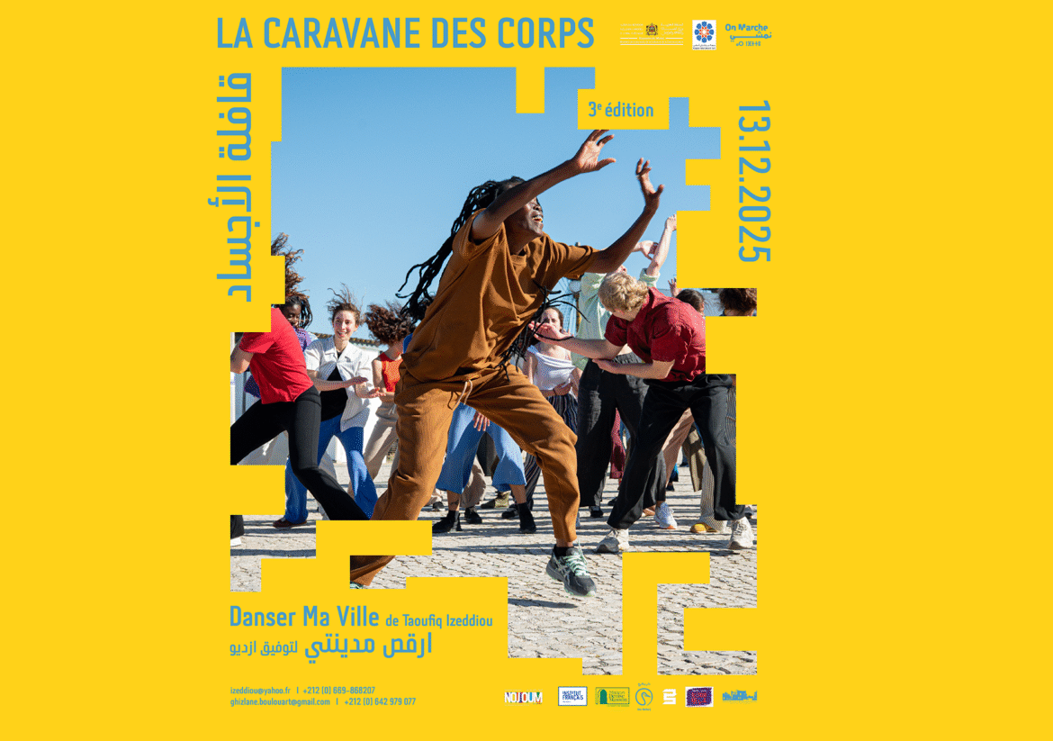 La Caravane des Corps – Danser ma Ville revient à Marrakech du 6 au 13 décembre 2025 pour sa troisième édition. Initiée par le chorégraphe Taoufiq Izeddiou et portée par la Compagnie Anania Danses, cette aventure chorégraphique transforme la ville en un plateau de danse à ciel ouvert. Ateliers, performances collectives et restitution publique rythmeront cette semaine, réunissant danseurs amateurs et professionnels dans une expérience poétique et participative. Rendez-vous le 13 décembre pour la performance finale, ouverte à toutes et à tous, au cœur de la médina.