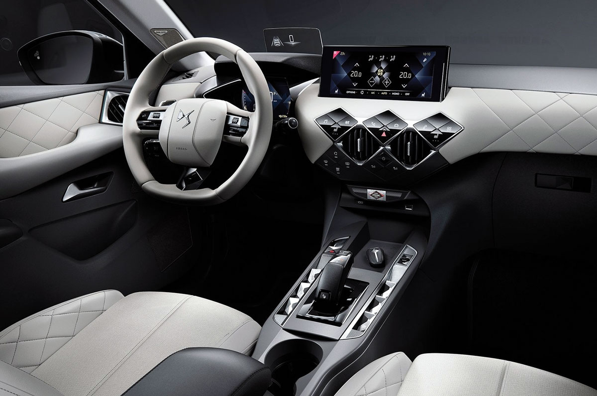 Evidemment, la cellule habitable n’a pas été oubliée, se voulant très originale elle aussi. A la fois moderne et intuitif, le combiné numérique personnalisable permet au conducteur d’afficher à l’envi de nombreuses informations de conduite via un menu déroulant et avec cinq modes d’affichages différents. Héritée de la DS 7 Crossback, la console centrale joue la carte de l’élégance avec sa commande de boîte de vitesses, son démarrage mains libres et sa commande de frein électrique. Plus pratique encore, l’emplacement pour déposer et recharger par induction son smartphone. Et que dire de la façade centrale à commandes sensitives ! Une palette d’accessoires haut de gamme qui incarne bel et bien une certaine idée du luxe à la française. En atteste également le panel de finition, au nombre de quatre, qui propose au choix des matériaux de très belle facture avec notamment des confections cuirs grainés ou Nappa pleine fleur avec finition «Art Leather», des surpiqûres au point perle ou au motif diamant, du textile tressé, de l’Alcantara, un volant cousu main et en cuir pleine fleur …