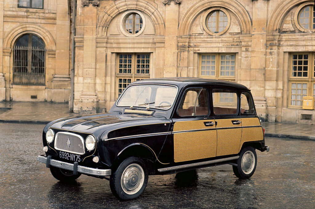 Produite de 1961 à 1992, la Renault 4, souvent désignée aujourd’hui sous l’appellation devenue générique de 4L, a connu trois générations de clientèles, évidemment différentes ou plurielles comme ces jeans, passés de l’habit utile au vêtement symbole de la jeunesse, avant d’être le pantalon de tous. Au cours des années 1960, les possesseurs de Renault 4 sont des acheteurs séduits par le bi-corps et l’espace intérieur sans égal. Un choix audacieux qui voit Renault se décaler du marché de renouvellement de la 4 CV. La marque ouvre un autre registre, ne conservant que la seule rusticité du produit. Comme un Levi’s, la petite Renault a des numéros, R3 ou R4, une façon de mieux s’adapter aux usages de ses clients et d’offrir des coupes légèrement différentes : la R3, c’est le dépouillement absolu, avec un minuscule moteur de 603 cm3 ; la R4, c’est l’austérité garantie, mais avec un moteur de 747 cm³. La R4 Super, c’est le luxe avec une troisième vitre latérale qui lui donne le statut de limousine et un hayon arrière ouvrant vers le bas, accueillant une vitre arrière conçue pour y coulisser. Du sur-mesure dans la même étoffe. En 1963, elle s’offre même le luxe d’une version Parisienne, jean noir avec poches cannelées. Mais durant toute sa vie commerciale,