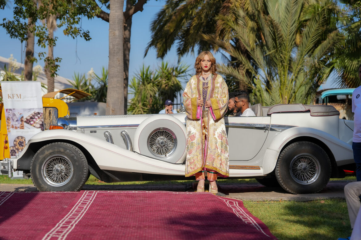 Ce spectacle d’exception a réuni des créateurs venus du Maroc et d’ailleurs, dans une mise en scène audacieuse mêlant mode, art, joaillerie et véhicules de collection. Le public a été invité à un véritable voyage à travers les époques, où le caftan marocain a défilé au rythme des moteurs emblématiques, des carrosses royaux aux voitures de prestige. Parmi les moments marquants, la Collection Adib Belghazi a mis en lumière des caftans centenaires issus de différentes régions du Royaume, de Safi à Fès, en passant par Marrakech, Rabat et Salé, présentés en harmonie avec une sélection raffinée de voitures anciennes. Le défilé a également dévoilé les créations de Elcouhen Haute Couture, alliant modernité des coupes et respect de l’héritage marocain.