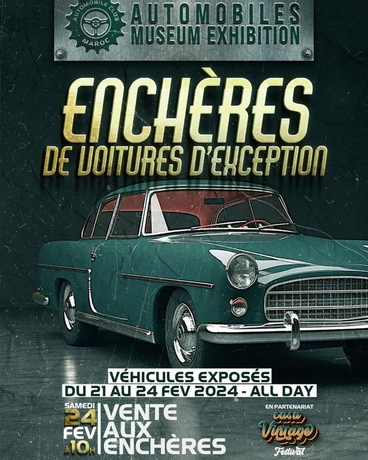 Lors du Casa Vintage festival qui se déroule du 21 au 25 février, L’automobile Club du Maroc organise une vente aux enhères d’un nombre de vehuciles classiques dont une Ford Mustang de 1969, une Triumph TR6, des Mercedes classiques et plein d’autres modèles.